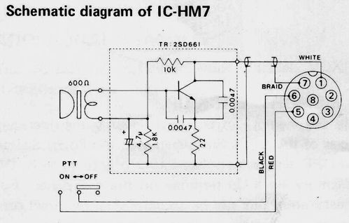 専用のアンプ付きハンドマイク IC-HM7 以外を使用する為の改造案です。