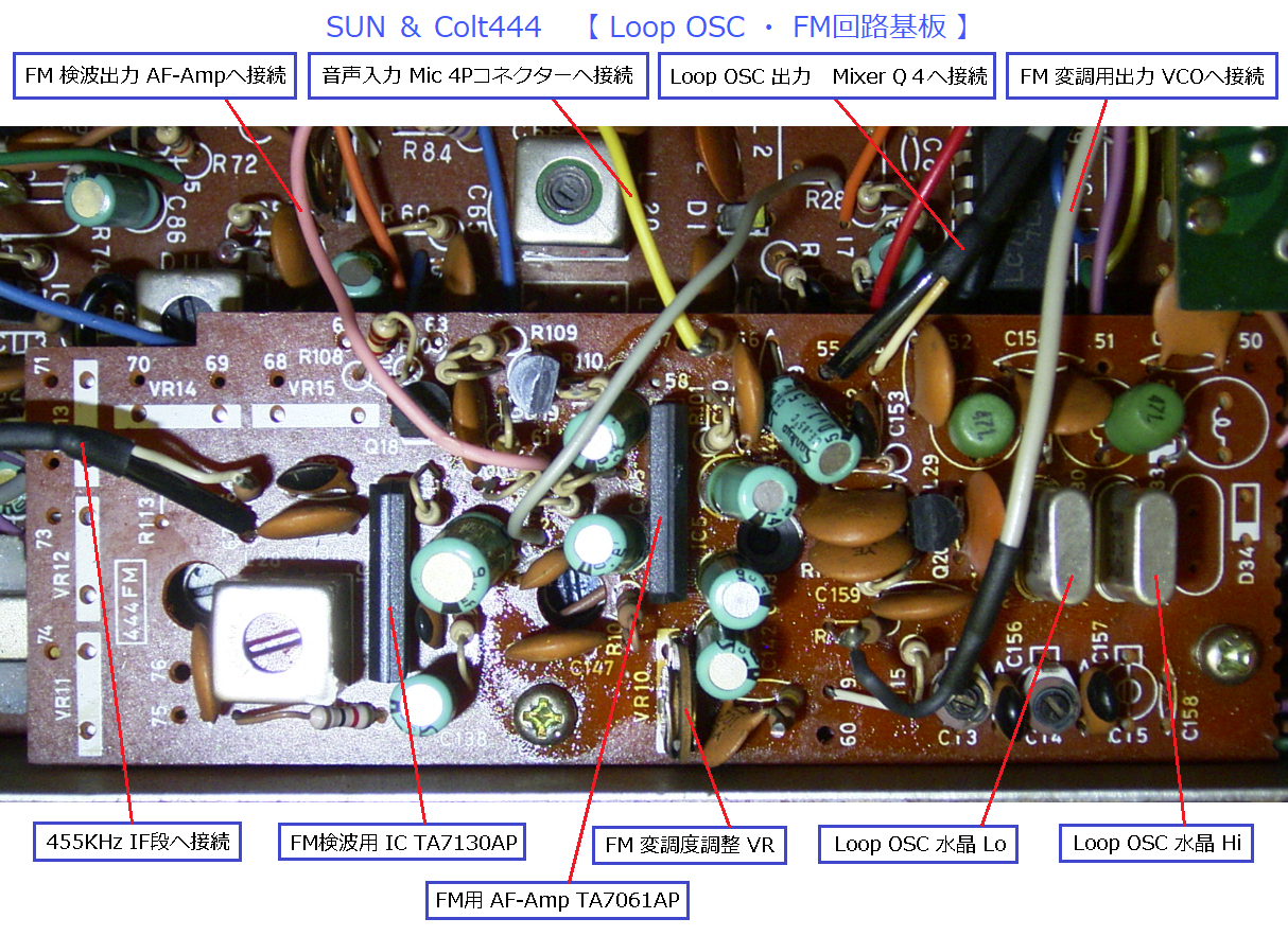 SUN と COLT444 には、【 FM 変調用AF回路、検波回路、Loop OSC 】 基板が増設されています。