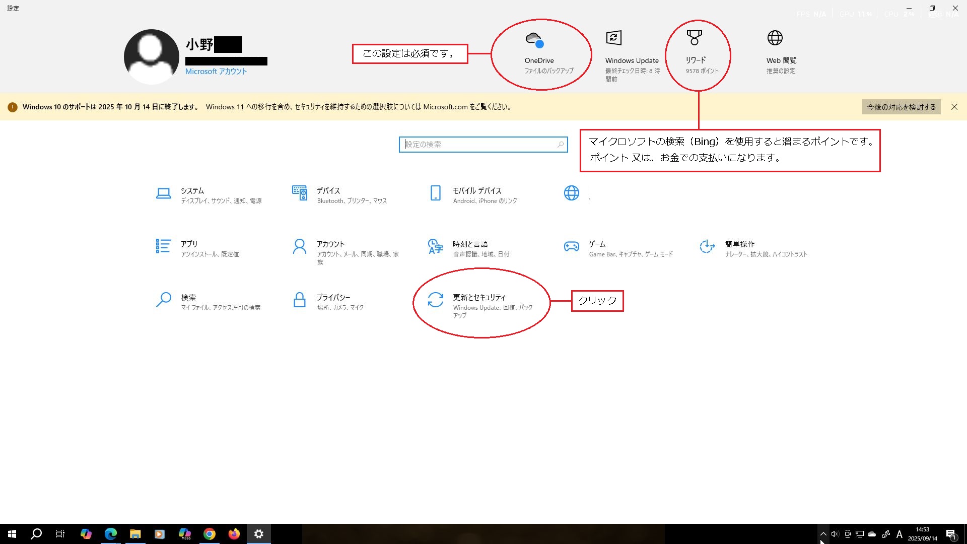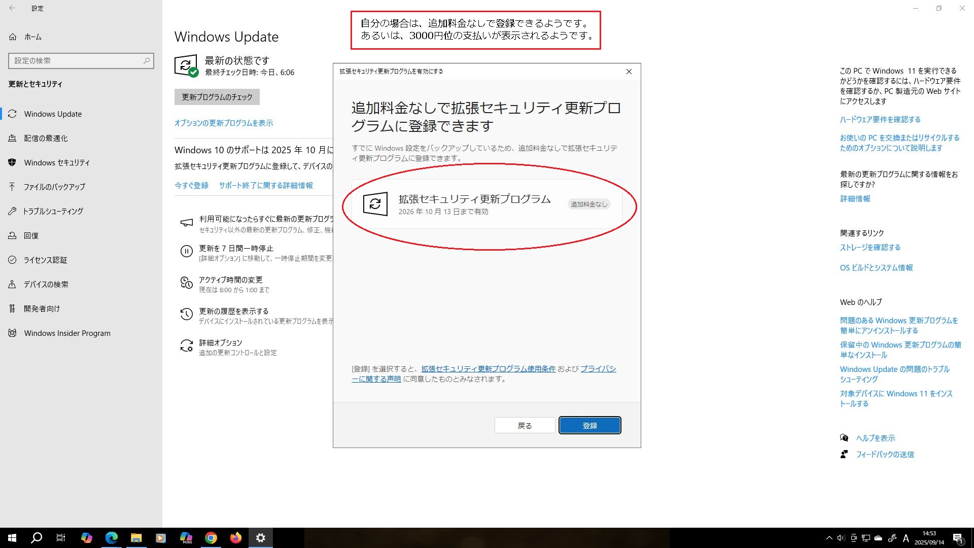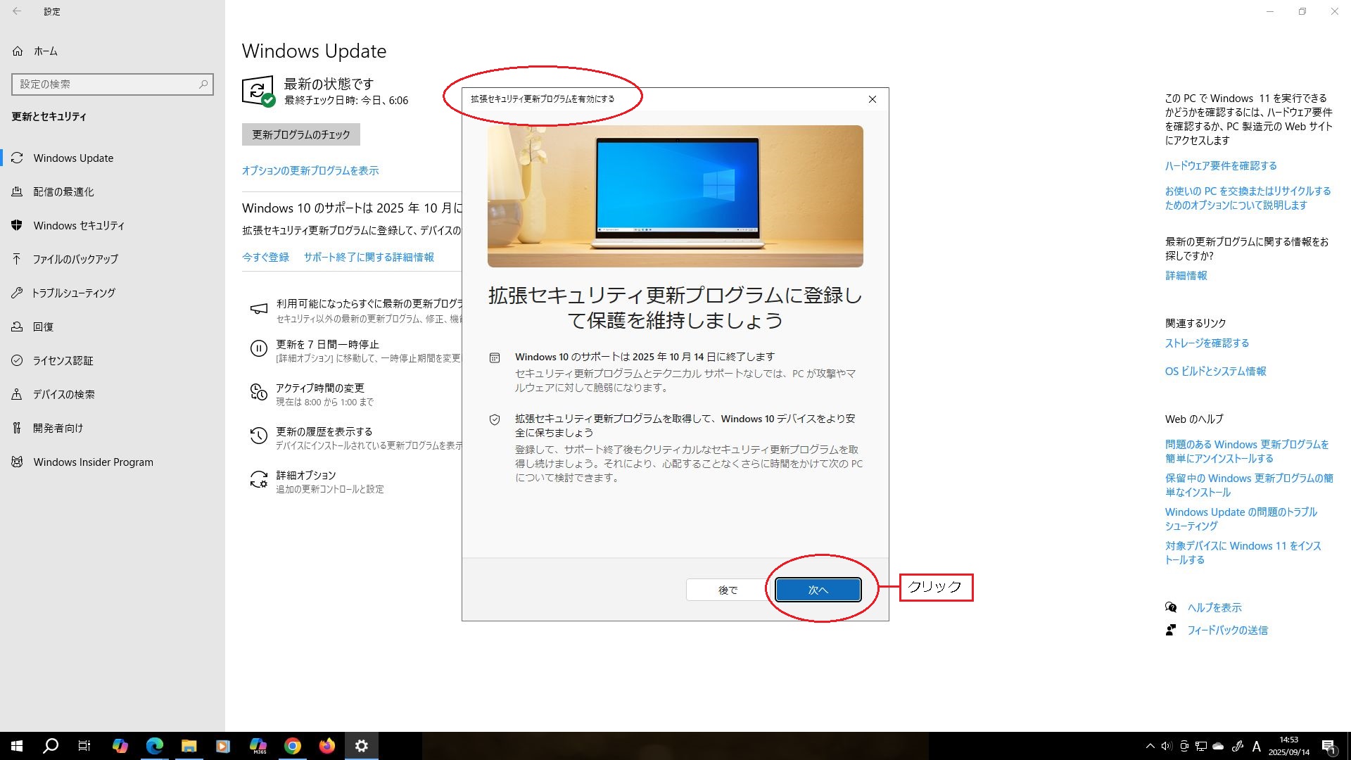 Windows10 を使い続ける為に必要な、拡張セキュリティー更新プログラム の案内が来るのを待っていました。