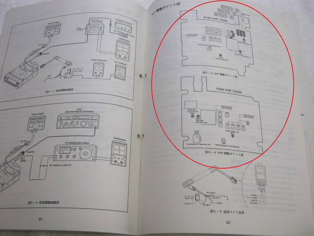 半固定VRの 調整箇所が載っているページですが、文字が潰れていて読めません。