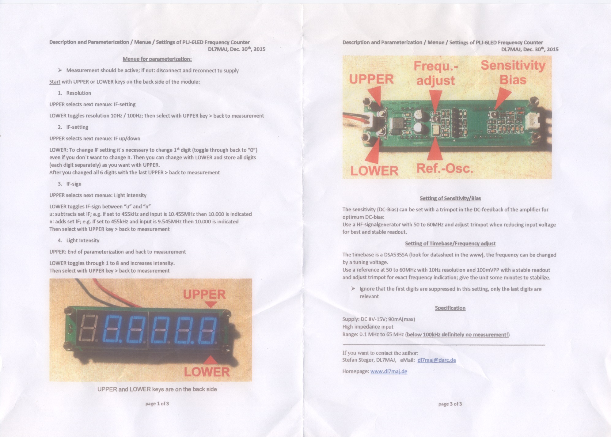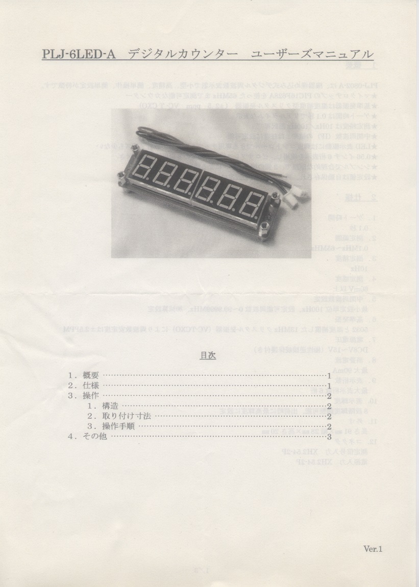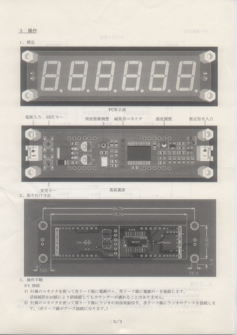 前のページに戻る 下にスライドして行って、見てくださいね。 7セグLED 周波数カウンター基板 取説 2026.01.09 追加 以下の取説は、オークションなどで販売されている基板の物です。 紙媒体だと、しまい込んで行方不明になり、探すのに一苦労です。 自分用の忘備録として、ネットにUPしておきます。 前のページに戻る