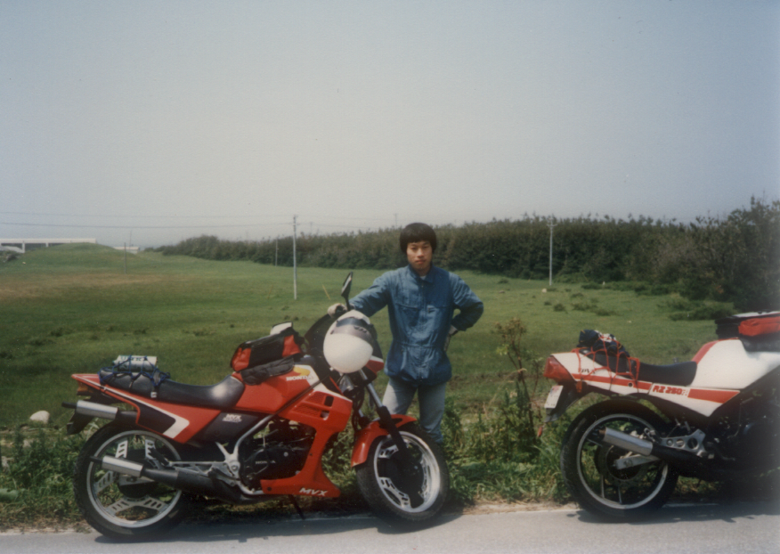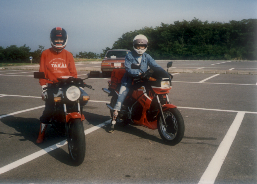 左隣は、RZ250R に乗っている 友人の桜井君です。