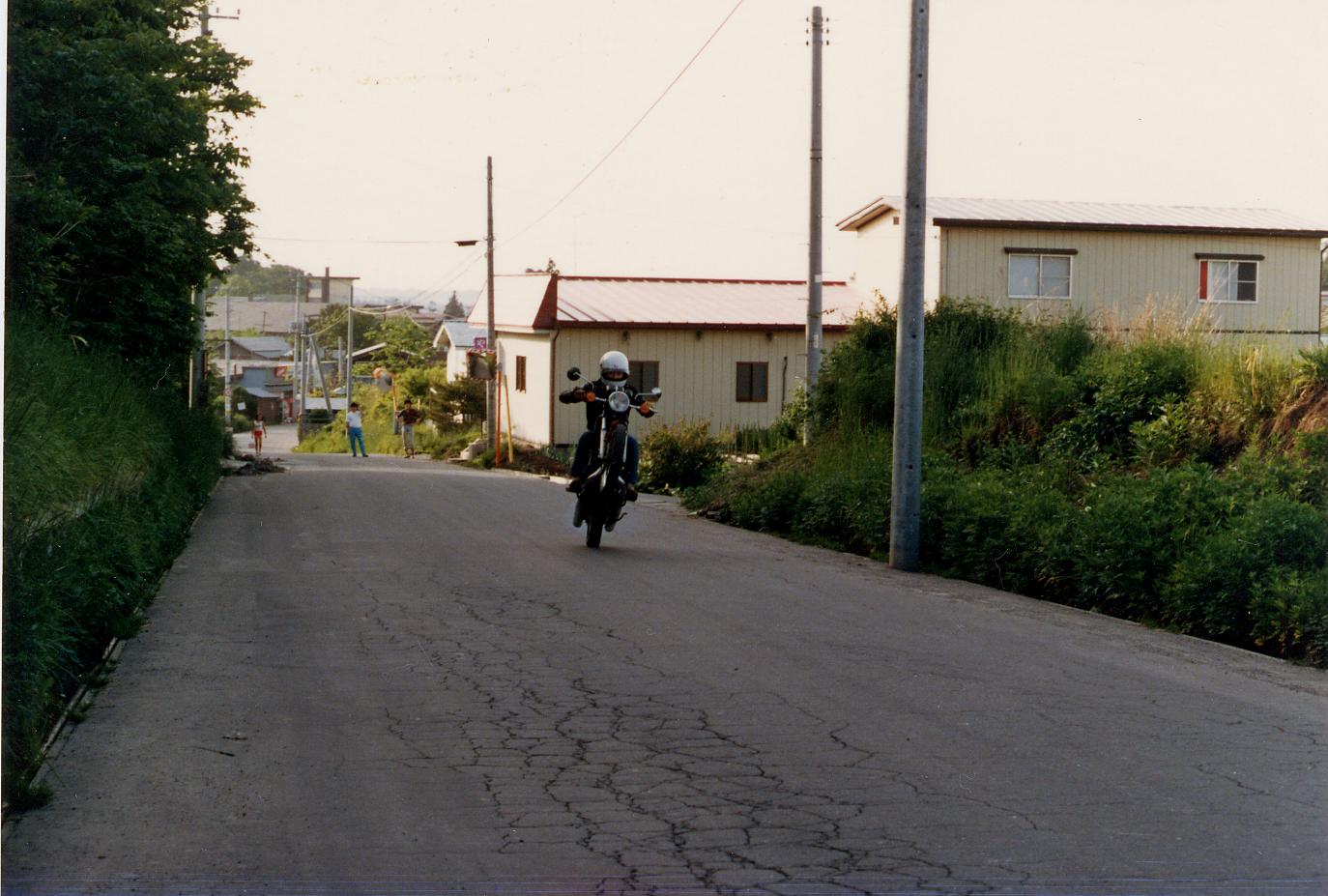 下記の画像は、大学生の時に乗っていた、「 ヤマハRD250 改400 」でのウィリーです。