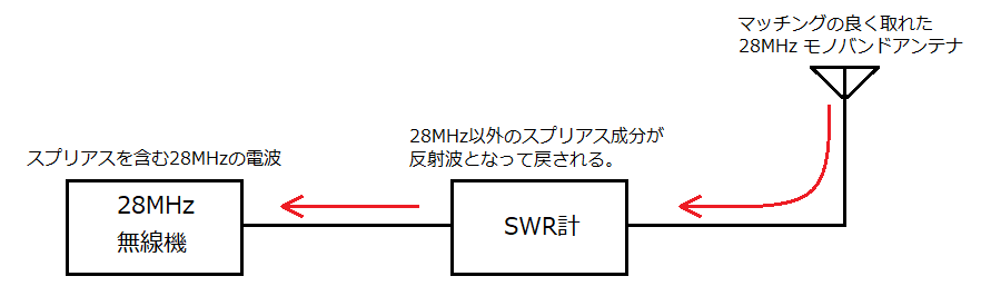 つまり、送信出力に、スプリアスが多く含まれている場合は、SWR値が悪くなります。
